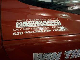 The Corvette went to Jason Brerler of Conshohocken PA. The $500 went to Robert Sylvester of Jefferson Hill PA and the $250 went to Bill Fonner of Abington PA. The drawing was Oct 11th at